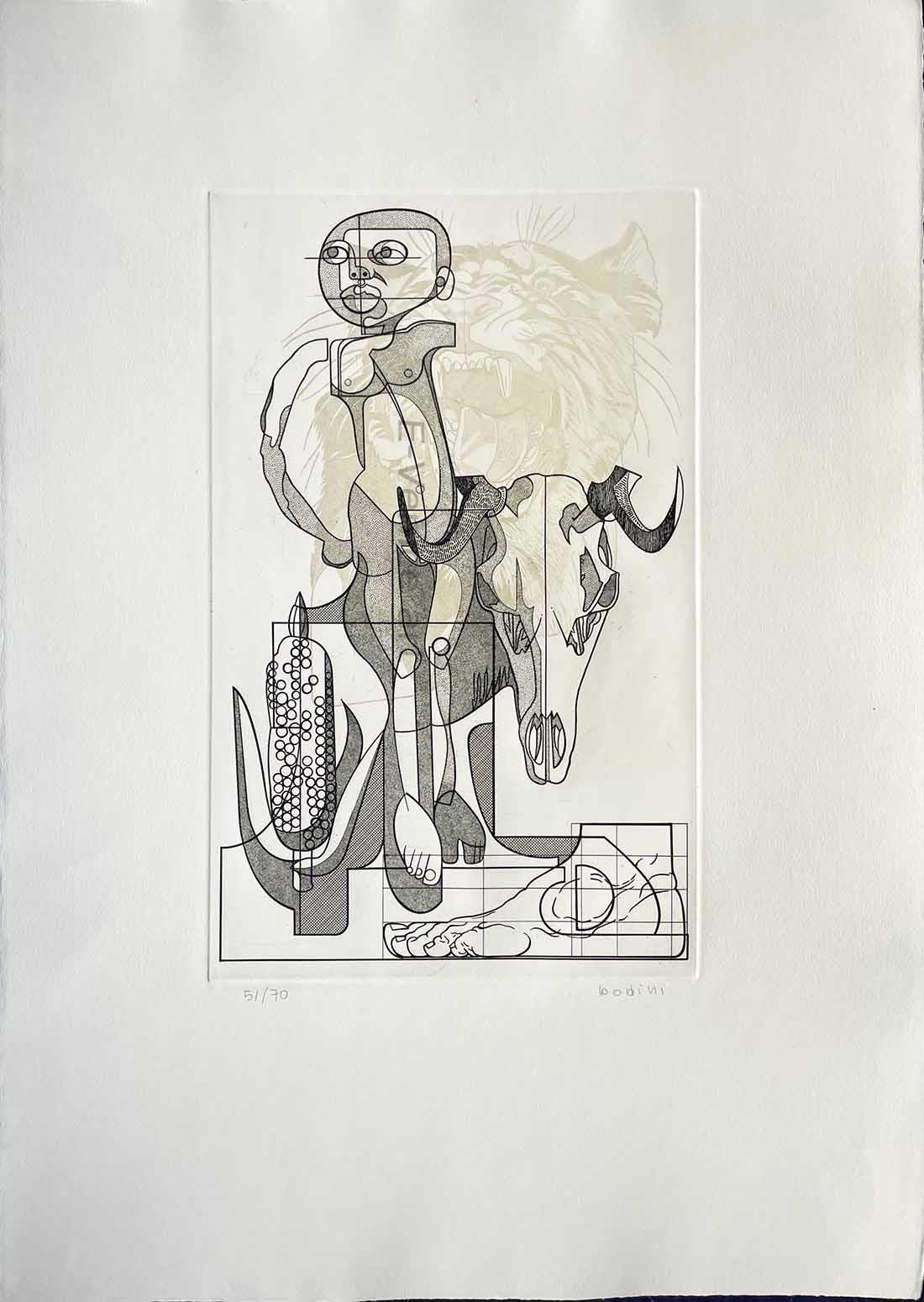Sono stati inoltre tirati otto esemplari fuori commercio segnati da A/H a H/H: i primi cinque destinati all'Autore, i rimanenti agli archivi del Museo d'Arte Contemporanea di Firenze, della Calcografia Nazionale di Roma, del MOMA di New York. Dalla cartella "Cinquanta incisioni originali di maestri italiani"