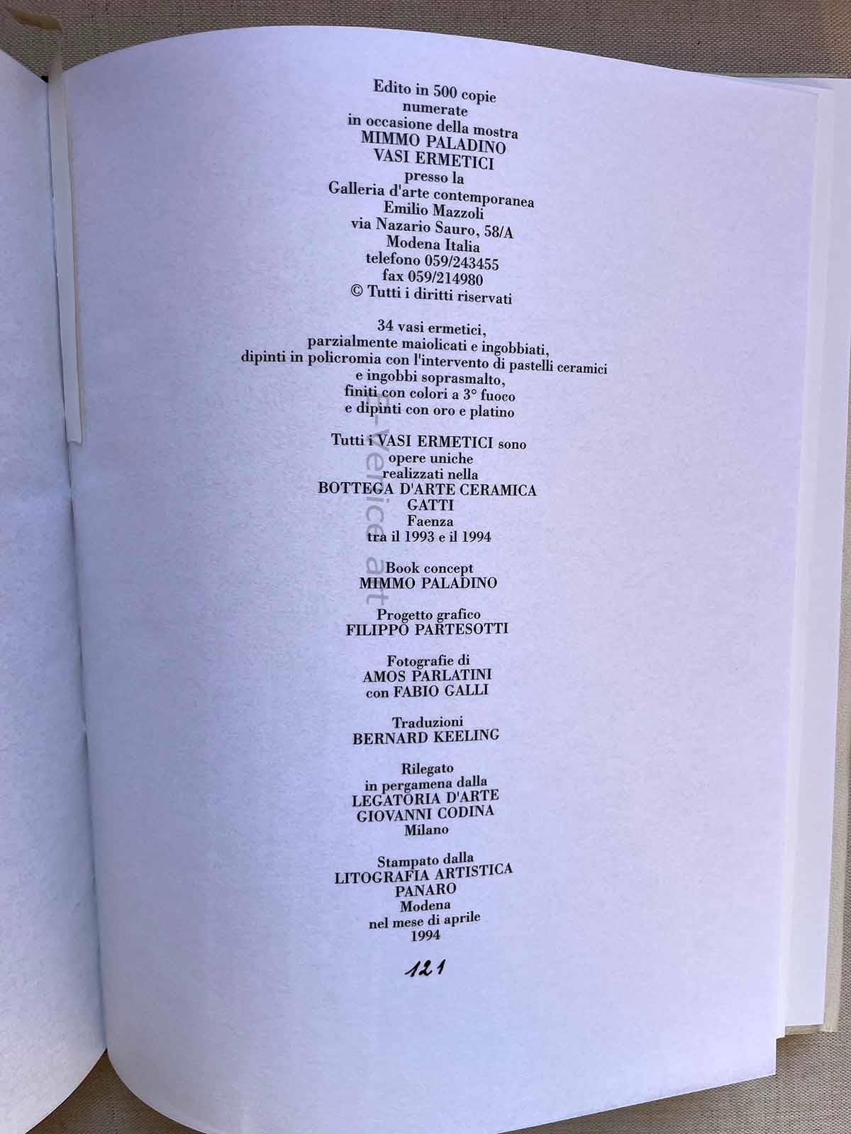 il libro si apre da entrambe le parti, concetto grafico del Maestro Paladino, Design by Filippo Partesotti.
