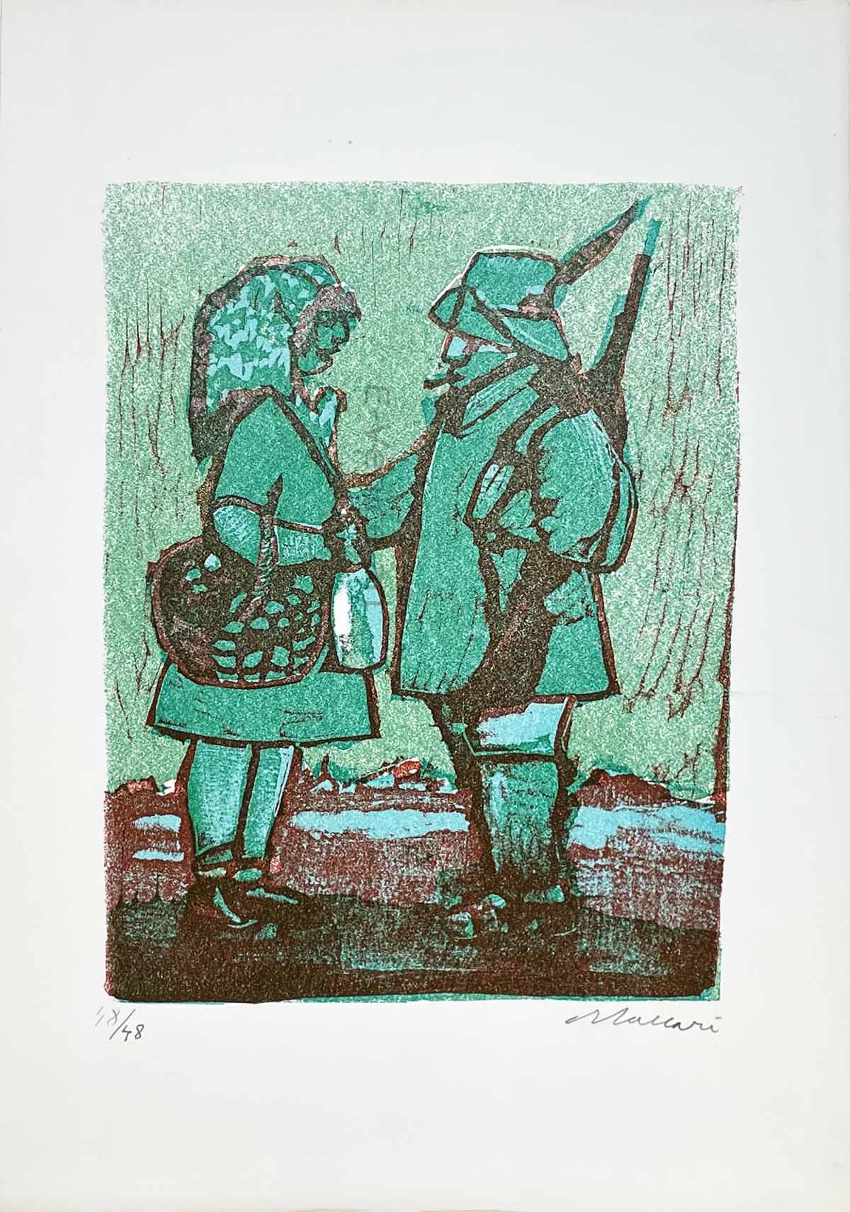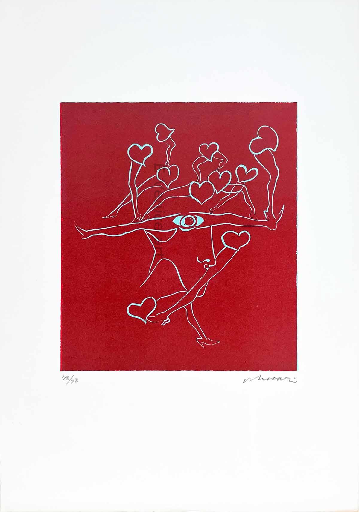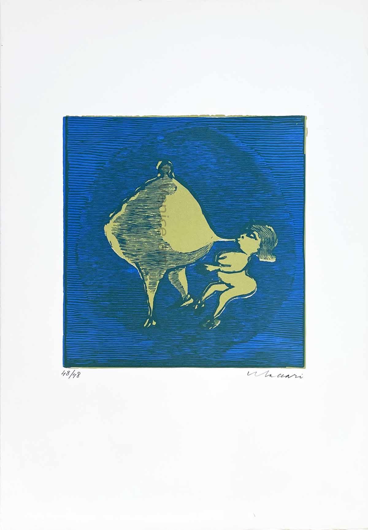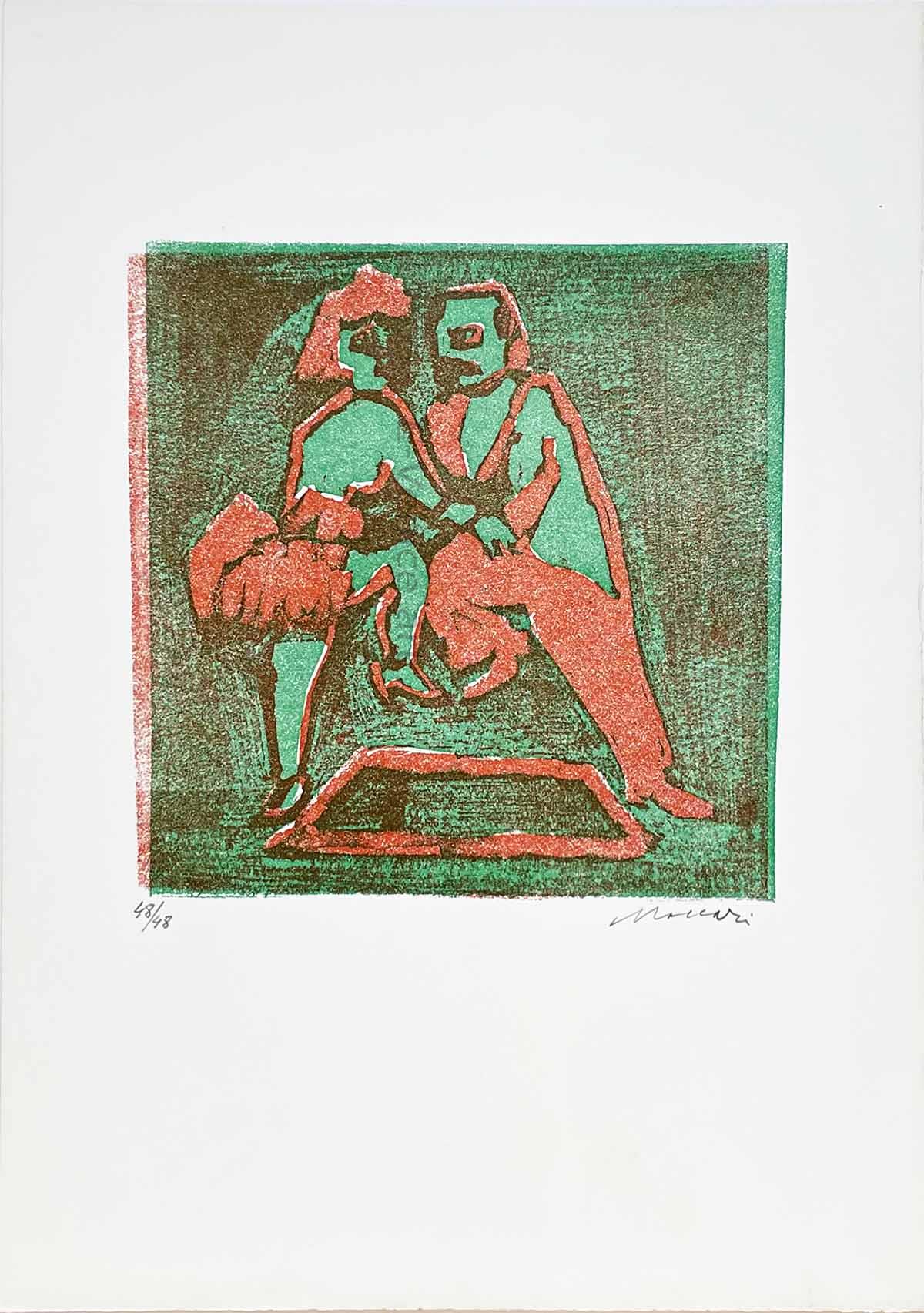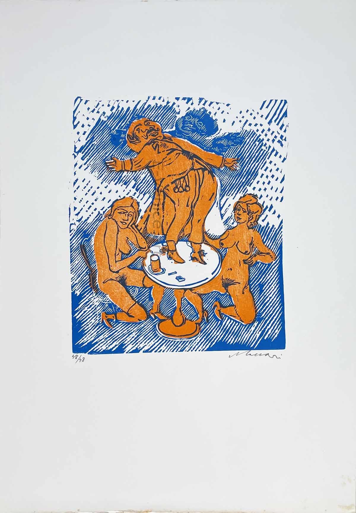 Cartella in folio grande di mezza tela, curata dall'artista per i suoi amici contenente 14 linoleografie a colori originali numerate e firmate